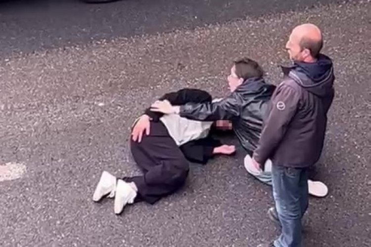 Genç kız, D100 Karayolu'ndaki asfalt zemine düştü.