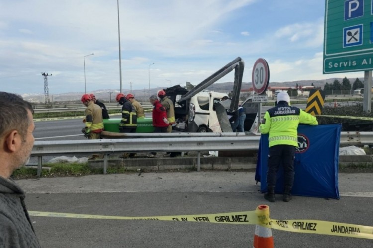 TEM Otoyolu'nun Düzce geçişinde bariyerlere ok gibi saplanan hafif ticari araçtaki 2 kişi olay yerinde hayatını kaybetti.