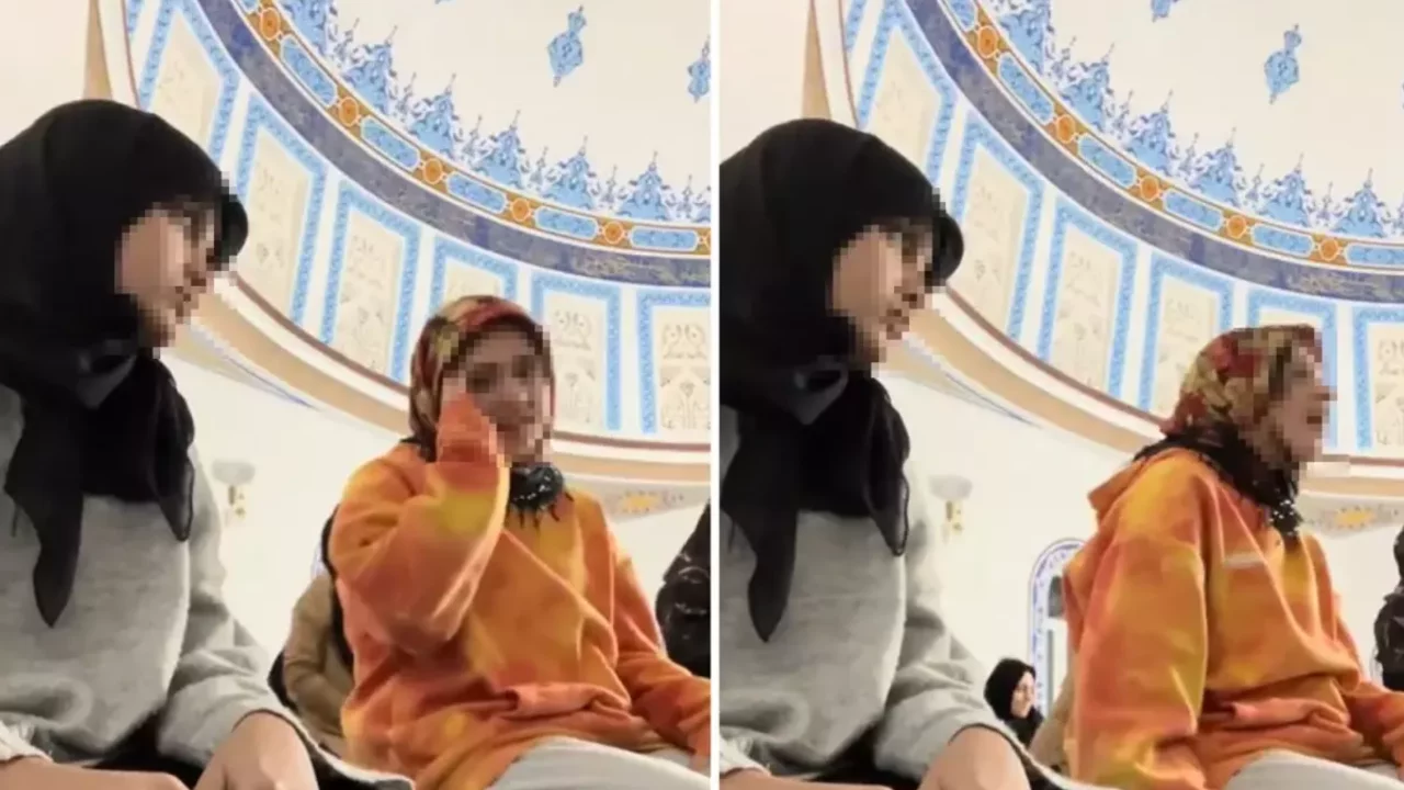 Teravih namazı sırasında camide TikTok videosu çekmeye çalışan kızları fark eden diğer namaz kılan kadınlar, "Hem namaz kılmıyorsunuz hem de insanları rahatsız ediyorsunuz. Buradan hemen gidin" diyerek tepki gösterdiler.