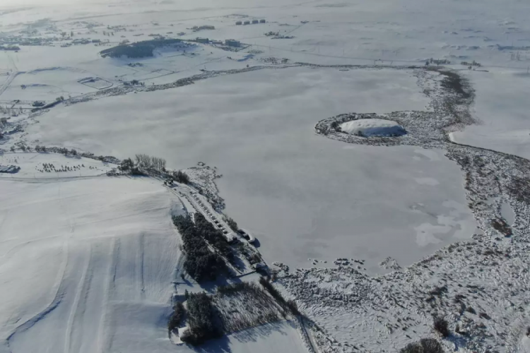 Kent merkezine 41, Hafik ilçesine ise 2 kilometre uzaklıkta bulunan ve yüzeyi tamamen buzla kaplanan Hafik Gölü, dron ile havadan görüntülendi.