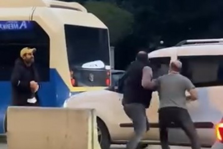 İstanbul Kadıköy'de hafif ticari araç sürücüsü ile minibüs şoförü arasında çıkan tartışma kısa sürede büyüyerek sopalı kavgaya dönüştü. Kavga çevredeki kişiler tarafından cep telefonuyla kaydedildi.