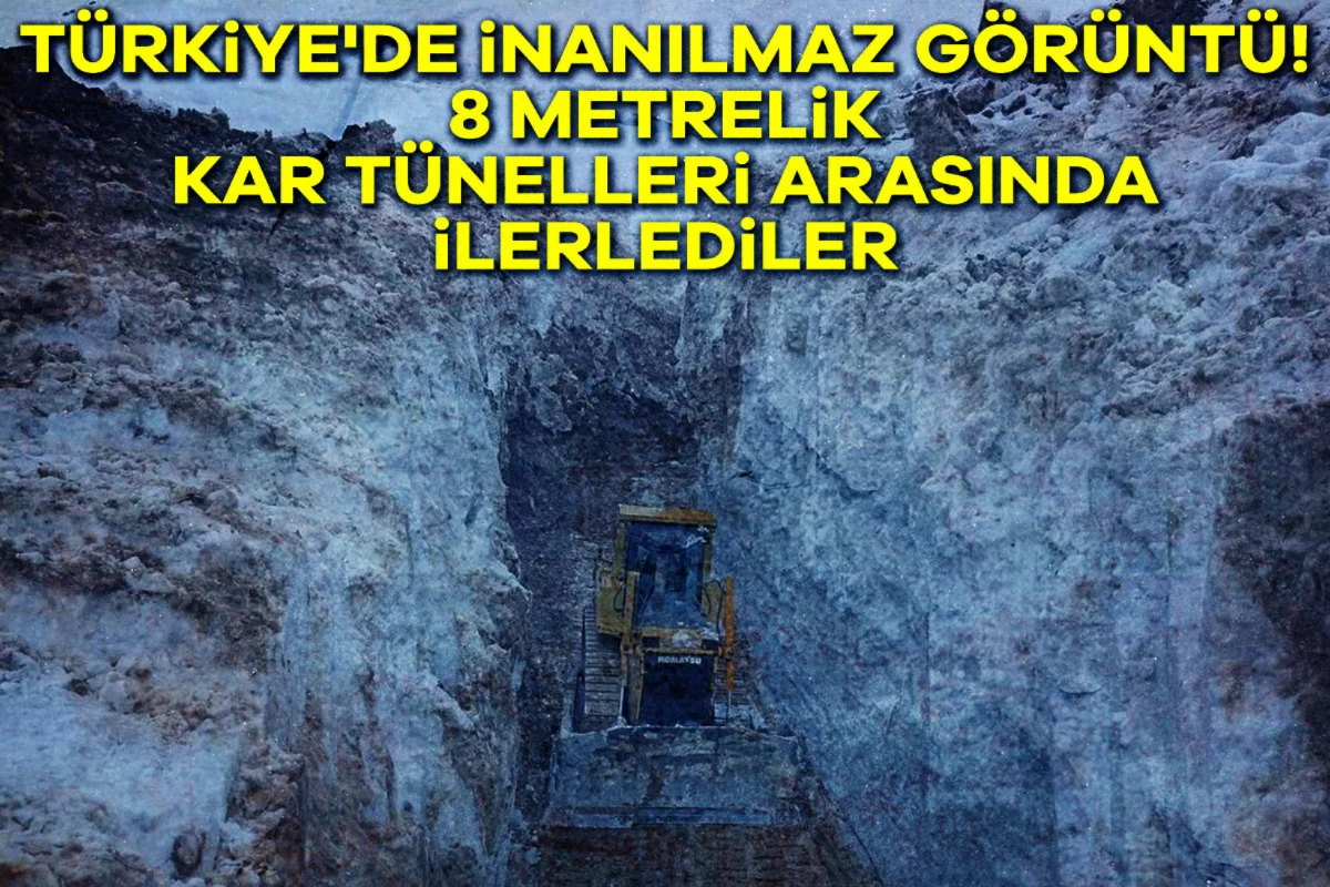 Hakkari'nin Yüksekova ilçesinde kar kalınlığı 8 metreyi aştı, açılan yollar dev tünellere dönüştü. İş makineleri zaman zaman karın içinde kaybolurken, ekipler çığ riskine rağmen gece gündüz mücadeleyi sürdürüyor.