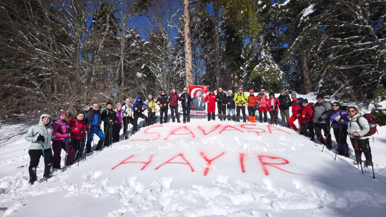 Kulüp üyeleri ve katılımcılar, dünyada yaşanan savaş ve çatışmalara dikkat çekmek amacıyla anlamlı bir mesaj verdi. Beyaz kar örtüsü üzerine büyük harflerle 'Savaşa hayır' yazan doğaseverler, sporun barışçıl ve birleştirici gücünü bir kez daha ortaya koydu.