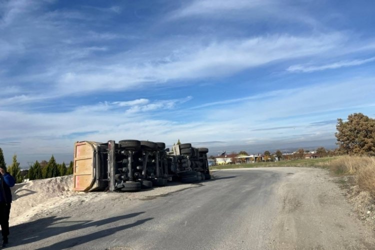 Uşak'ta yan yatan tırın sürücüsü yaralanarak hastaneye kaldırıldı.