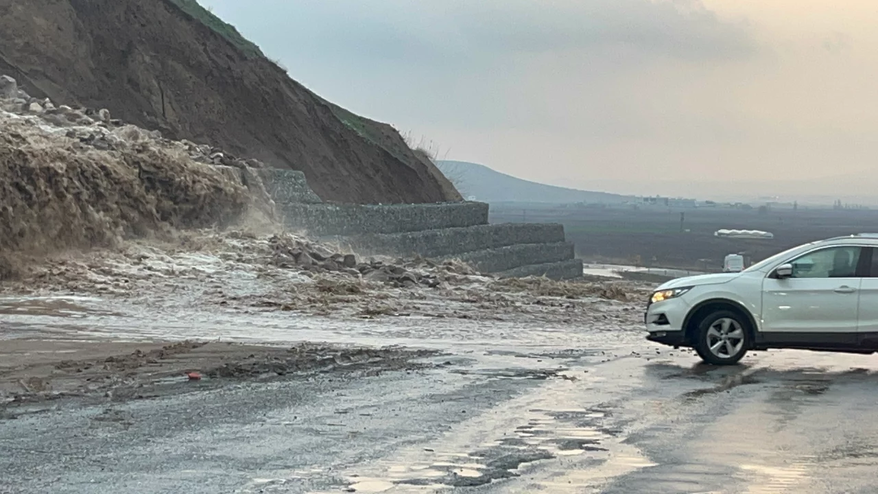 Batman'da şiddetli yağışın ardından sulama kanalının taşmasıyla tepeden hızla akan çamur ve su kütlesi, Batman-Diyarbakır kara yoluna ulaştı. Yamaçtan gelen çamur ve küçük kaya parçalarının yolun bir bölümünü kaplaması nedeniyle trafik tek şeritten sağlanmaya başlandı. Özellikle yamaçtan koparak yola düşen taş parçaları sürücüler için risk oluştururken, tepeden akan sular adeta çamurdan şelaleyi andırdı. İhbar üzerine bölgeye sevk edilen trafik ekipleri, kara yolunda güvenlik önlemleri alarak, sürücüleri dikkatli olmaları konusunda uyardı. Ekipler, araçların kontrollü şekilde geçiş yapmasını sağlarken, muhtemel bir kazanın yaşanmaması için bölgede denetimlerini sürdürdü.