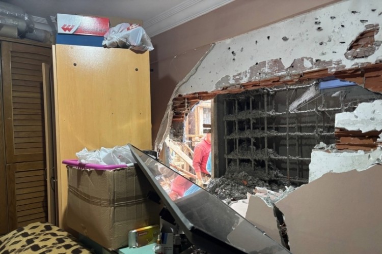 Kocaeli'de 5 katlı bir apartmanın yanındaki inşaat çalışması, 1'inci katındaki dairesinin odasının duvarını yıktı. Yatak odası betonla dolarken, uykuda olan ev sahibi olayı işçilerin zilini çalmasıyla öğrendi.
