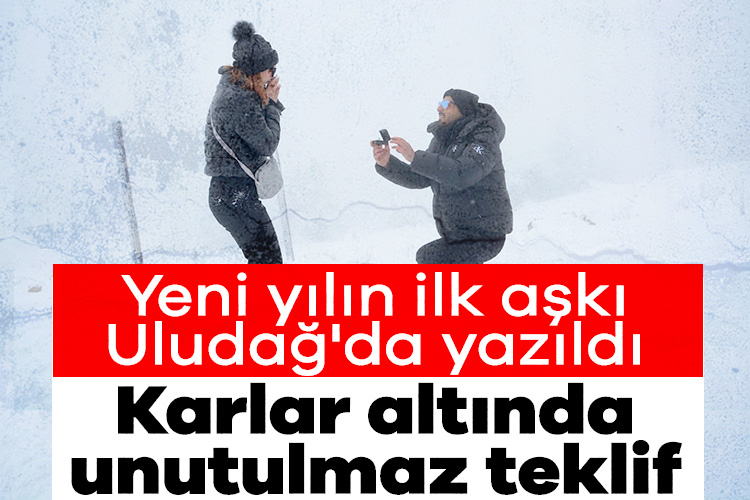 Kış turizminin gözdesi Uludağ, 2026 yılının ilk saatlerinde romantizmin zirveye çıktığı anlara sahne oldu. Yeni yıl coşkusunun yaşandığı zirvede, biri 2025'in son, diğeri 2026'nın ilk evlilik teklifi olmak üzere iki ayrı romantik sürpriz karlar altında unutulmaz anlar yaşattı.