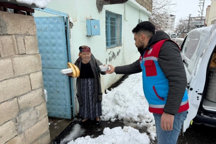 Gaziantep'in Araban ilçesinde etkili yoğun kar yağışına rağmen ihtiyaç sahibi 500 aileye sıcak yemek ulaştırıldı.