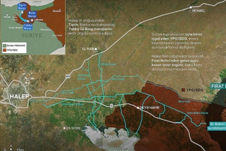 Terör örgütü YPG/SDG, Suriye topraklarının üçte birini işgal altında tuttuğu sahada enerji kaynaklarının yanında ülkenin en büyük su kaynağını da tehdit aracı olarak kullanıyor.