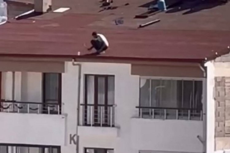 Elazığ'ın Sürsürü Mahallesi'nde işçiler, hiçbir güvenlik önlemi almadan 5 katlı bir binanın çatısında çalıştı. Vatandaşlar tarafından cep telefonu kamerasıyla kaydedilen görüntülerde, işçinin metrelerce yüksekte tedbirsiz şekilde çalıştığı görüldü. O anlar yürekleri ağza getirdi.