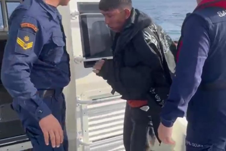 Aydın'ın Didim ilçesinde yüzerek Yunanistan'a geçmeye çalışan ve bitkin düşerek yardım çağrısında bulunan bir düzensiz göçmen kurtarıldı.