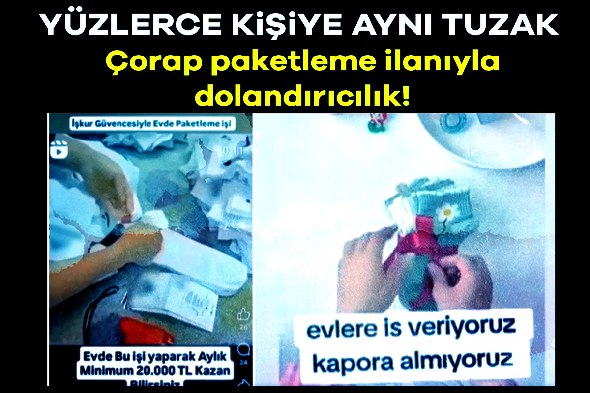 Sosyal medyada yayılan "evden para kazan" ilanlarının, özellikle ev hanımları ve yaşlıları hedef alan yeni bir dolandırıcılık yöntemine dönüştüğü iddia edildi. İstanbul Büyükçekmece'de sözde bir paketleme firmasının, "evde çorap paketleyip para kazanma" vaadiyle yüzlerce kişiyi mağdur ettiği belirtildi.