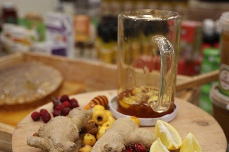 Tıbbi ve Aromatik Bitkiler Teknikeri Şerife Akkuş, "Organik bal ile beraber taze zencefili evde pratik uygulayabileceğimiz şurup kıvamında yapabileceğimiz güzel bir tarif hazırlayacağız. Taze zencefili dilimleyip tane tane küçük dilimler haline getiriyoruz. Kavanozumuzun içerisine belli bir miktar bal koyup içerisine ekliyoruz. Özellikle boğaz enfeksiyonuna, boğaz ağrısına, geçmeyen öksürükte ve bağışıklık sistemini kuvvetlendirmek adına evde 5 yaş sonrası herkesin kullanabileceği çok güzel bir şurup kıvamında ballı karışım. Bal ürünlerine veya zencefile alerjik reaksiyonu olan kişilerin kullanmasını tavsiye etmiyoruz. Onun dışında günlük dozajı bellidir, sabah ve akşam bir tatlı kaşığı şeklinde evden çıkmadan veya okula gitmeden önce alabilirsiniz" dedi.