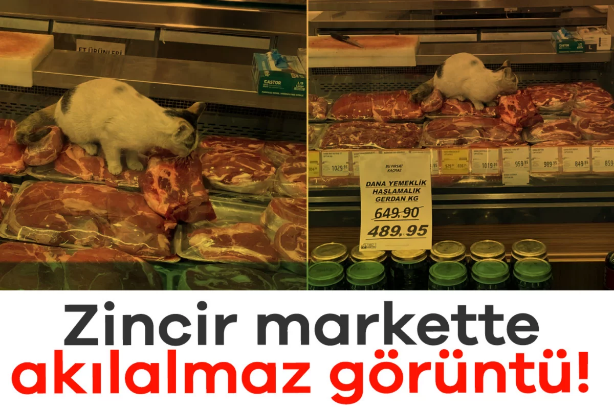 Geçtiğimiz günlerde bir şarküteri dolabında kedi girdiği görüntüleri hafızalardan silinmezken benzer bir görüntü daha geldi. Yine zincir marketlerin birinde çekilen görüntülerde bir kedinin kırmızı etlerin olduğu bölümde olduğu ve etleri yediği görüldü.