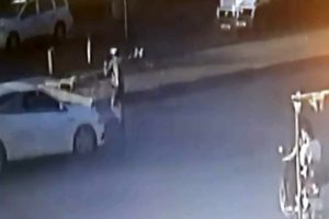 Tam refüje ulaşmasına iki adım kala bir otomobil kendisine çarpmak üzereyken, son bir hamle yaparak zıpladı. Otomobilin kendisine çarpmasına ramak kala yaptığı bu hamle yaşlı adamın hayatını kurtardı.