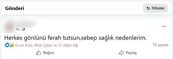 Evli ve 2 çocuk babası E.Ç.'nin, olaydan kısa süre önce sosyal medya hesabından 'Herkes gönlünü ferah tutsun, sebep sağlık nedenlerim' yazılı paylaşım yaptığı öğrenildi.