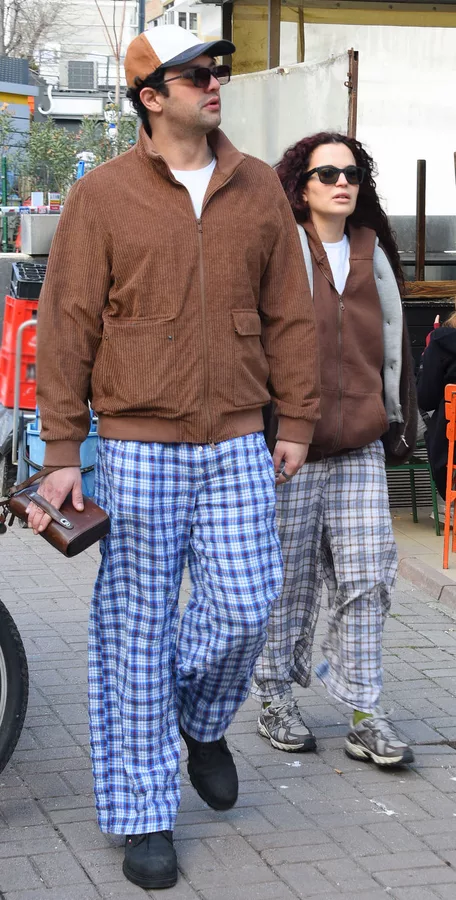 Pijamalarıyla yürüyüş yapan ikili, basın mensuplarını fark edince panikledi ve adımlarını hızlandırdı.