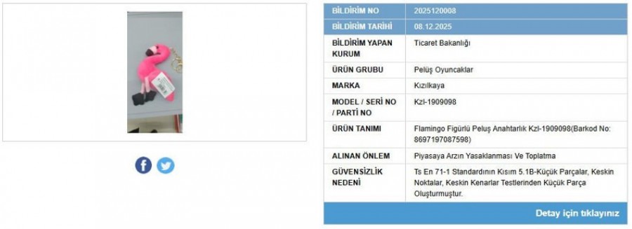 Son denetimlerde, Kızılkaya markasına ait bir oyuncak-aksesuar ürününde kullanıcı sağlığını tehdit eden unsurlar tespit edildi. İncelemelerin ardından söz konusu ürünün kullanım açısından güvensiz olduğu değerlendirilirken, gerekli işlemler hızla başlatıldı.