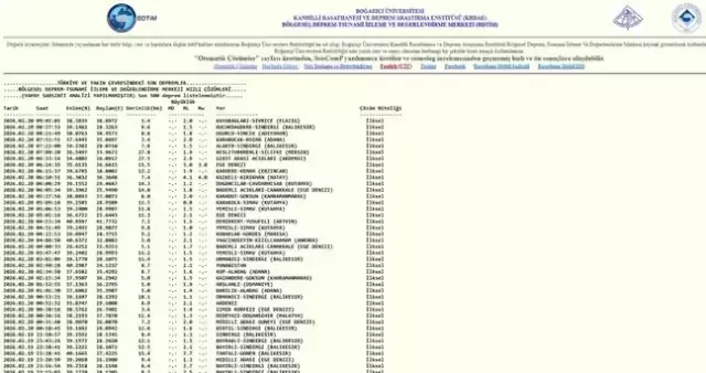 Boğaziçi Üniversitesi Kandilli Rasathanesi ve Deprem Araştırma Enstitüsü ile Afet ve Acil Durum Yönetimi Başkanlığı (AFAD), 20 Şubat 2026 itibarıyla Türkiye genelindeki sismik hareketliliği anlık ve kesintisiz şekilde izlemeyi sürdürüyor. Ülke genelinde konumlandırılan yüksek hassasiyetli ölçüm istasyonları sayesinde en küçük yer hareketleri saniyeler içinde tespit edilip analiz edilerek doğrulanmış veriler kamuoyuyla paylaşılıyor.