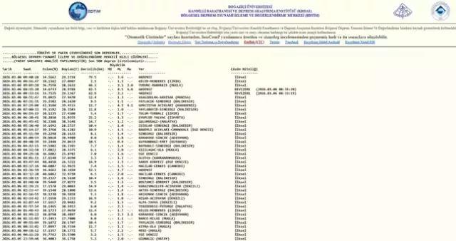 KANDİLLİ SON DEPREMLER LİSTESİ