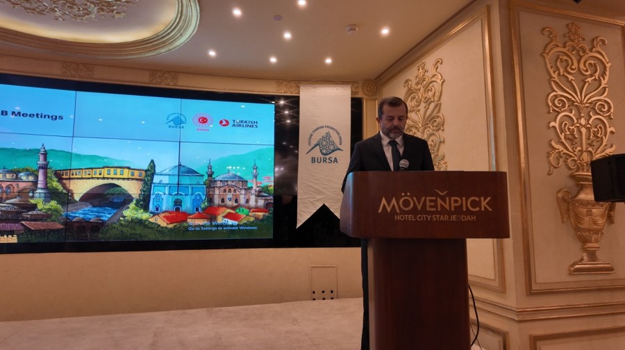 Bursa Kültür Turizm ve Tanıtma Birliği ile Yıldırım Belediye Başkanı Oktay Yılmaz adına konuşan Gürsu Belediye Başkanı Mustafa Işık, Suudi Arabistan'ın Cidde kentinde Bursa'yı tanıttı.