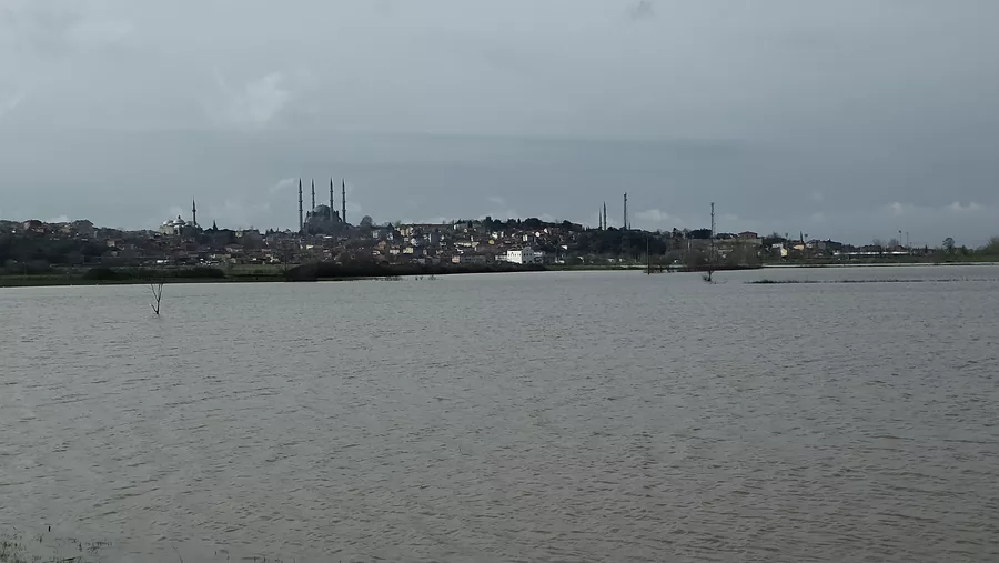 Geçmiş yıllarda da benzer görüntülerin oluştuğu Selimiye Camii çevresinde bu yıl yaşanan su taşkınları sonrası ilginç manzaralar ortaya çıktı. Su basan tarlalardan bakıldığında caminin silueti, Sultanahmet Camii'ni andıran görüntüler oluşturdu.