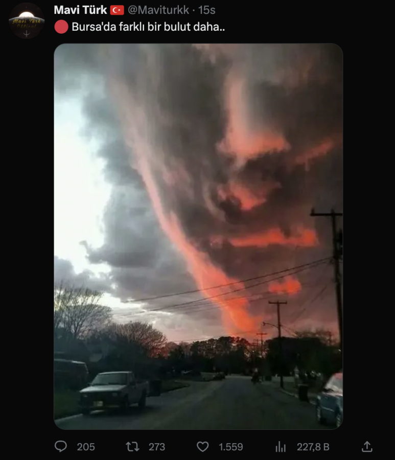 Mercek bulutunun, Bursa'da görülmesinin ardından sosyal medyada yine bir bulut iddiasıyla çalkalandı. Yine Bursa'da görüldüğü iddia edilen Bulut hakkında gerçek sonradan anlaşıldı.