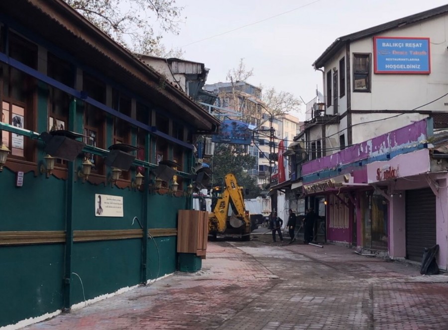 Normalde eğlence hayatı ve canlı atmosferiyle bilinen Arap Şükrü Sokağı, çalışmaların başlamasıyla sessizliğe büründü. Birçok işletmenin kapalı olduğu sokakta, belediye ekipleri kamu yolunu işgal eden tente ve eklentilerin söküm işlemlerine devam etti.