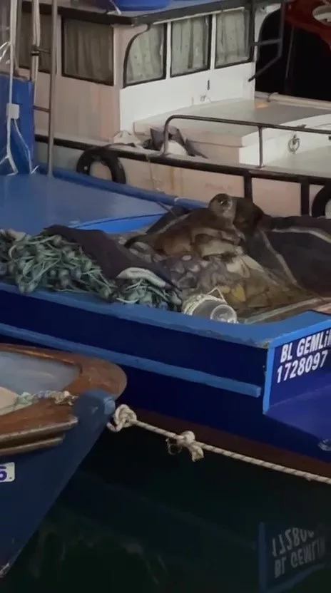 Bursa'nın Gemlik ilçesinde gece saatlerinde limanda bulunan vatandaşlar, bir teknenin üzerinde hareketlilik fark etti. Yakından bakıldığında ise aç kaldıkları düşünülen anne su samuru ile yavrularının tekneye çıktığı görüldü. Bir süre tekne üzerinde dolaşan sevimli misafirler, limanda bulunanların ilgisini çekti.