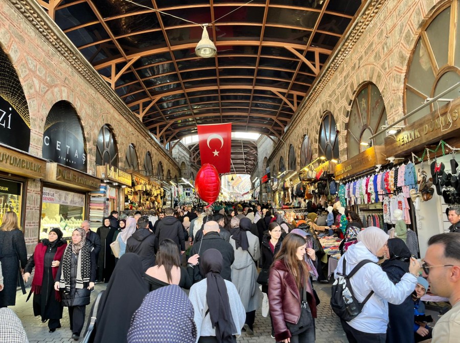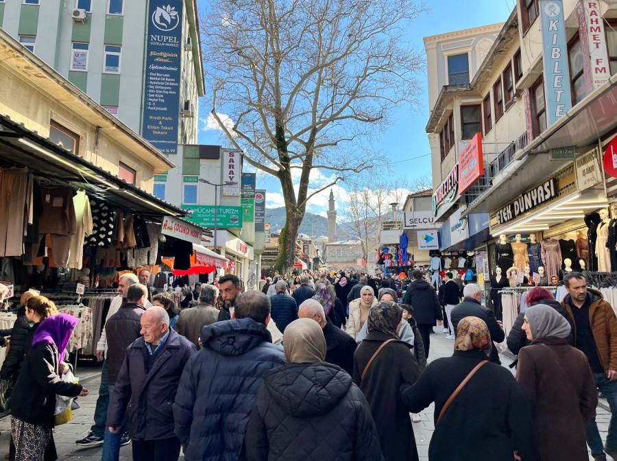 Bursa Bölge, 2026.02.14 14:5714 Şubat'ın cumartesiye denk gelmesi ve bahar havasını aratmayan güneşli hava, Bursa'da çarşı ve meydanları adeta kilitledi. Ramazan öncesi alışveriş telaşı da eklenince vatandaşlar yürümekte zorlandı.