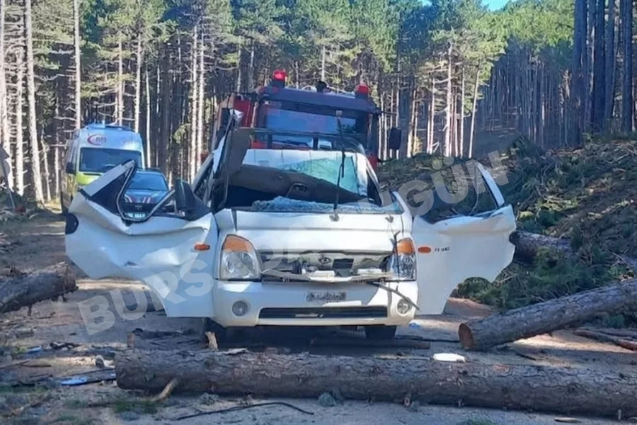 Bursa Bölge, 2026.04.29 12:21Bursa'da ormanda kesilen çam ağacının seyir halindeki aracın üzerine devrilmesi sonucu 1 kişi hayatını kaybetti, 1 kişi yaralandı. Olayla ilgili ağaç kesen kişi gözaltına alındı.