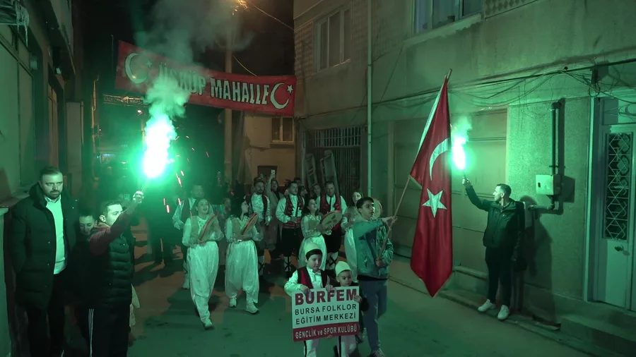 Bursa Bölge, 2026.03.15 11:10Bursa'nın Osmangazi ilçesine bağlı Gülbahçe ve Selamet Mahallelerinde Ramazan ayına özgü Rumeli sahur geleneği bu yıl da renkli görüntülere sahne oldu. Rumeli ve Balkan kökenli vatandaşların yoğun olarak yaşadığı mahallelerde, meşaleler, çalgılar ve geleneksel Balkan kıyafetleriyle sokak sokak dolaşan grup, söyledikleri şarkı ve türkülerle mahalleliyi sahura kaldırdı.
