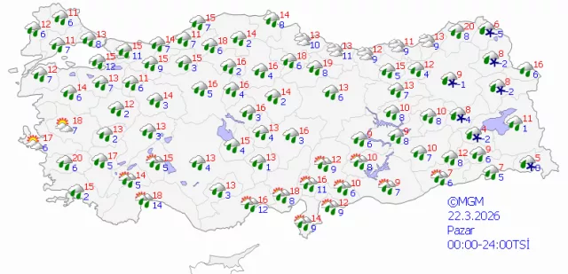 22 Mart Pazar : Ardahan, Erzurum, Muş, Bitlis, Hakkari, Ağrı