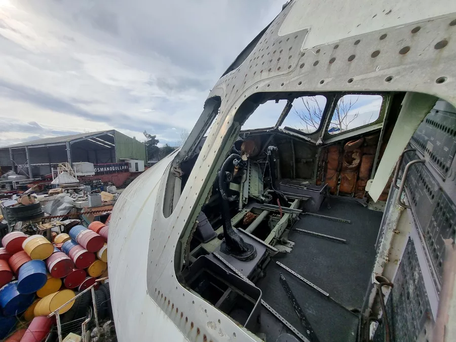 Bursa Bölge, 2026.02.21 10:35Bursa'da bir geri dönüşüm tesisindeki hurda Boeing 747 model yolcu uçağı, görenleri hayrete düşürüyor. Tesis sahasında bulunan 4 parçaya ayrılmış dev uçak, yoldan geçen vatandaşların yanı sıra bölgede eğitim uçuşu yapan pilotların da dikkatini çekiyor. Bursa'ya 10 yıl önce restoran yapılmak üzere İstanbul'dan getirilen ancak daha sonra atıl kalınca satılan uçak şimdi restoran, kafe veya benzer amaçlarla kullanılmak üzere yeni müşterisini bekliyor. Geri dönüşüm tesisi sahibi uçağa 2,5 milyon lira istediğini, bunun sadece alüminyum hurda fiyatı olduğunu ve 4 parçanın birleştirilebileceğini söyledi.
