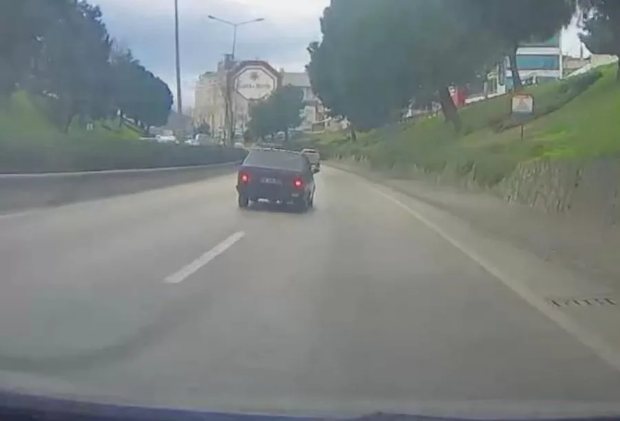 Yaşanan tehlikeli anlar trafikteki başka bir aracın kamerasına saniye saniye yansıdı. Görüntülerin ortaya çıkmasının ardından polis ekipleri sürücünün peşine düştü. Sivil trafik ekiplerince tespit edilen sürücüye yaklaşık 5 bin lira idari ceza uygulanırken, ehliyeti el konulup psikotekniğe sevk etti.