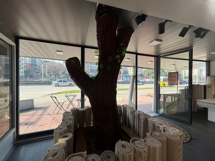 Bursa'da bir halı mağazası, içinden geçen ağaçla görenleri şaşırtıyor. Yıllardır kesilmeyen ağaç, dükkanın tam ortasında yükselirken işletme sahipleri mekânı doğaya göre şekillendirmeyi tercih etti.