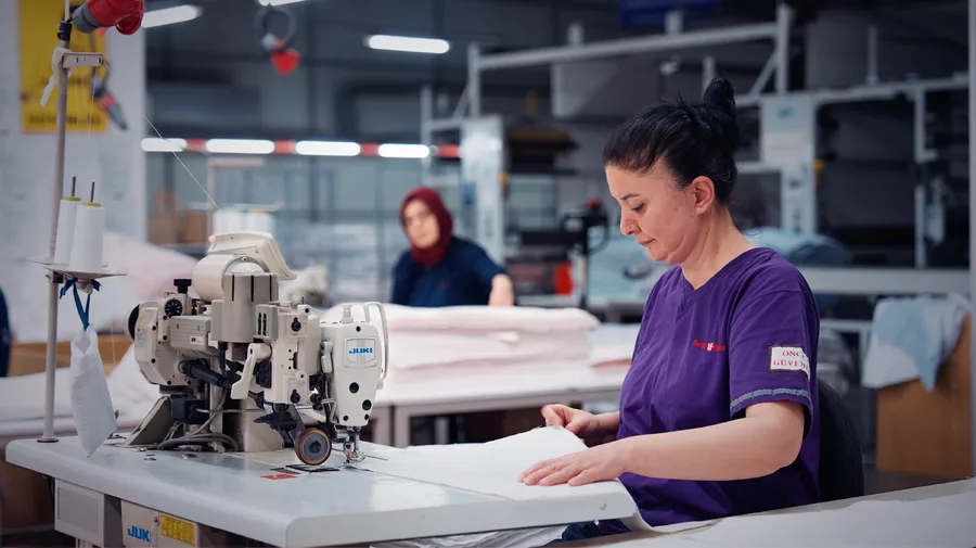 Holding bünyesindeki tekstil fabrikasındaki dijital baskı makinelerinde kumaşlara basılan tasarımlar, kesim ve dikim süreçlerinden geçerek yastık kılıfı haline getirildi.