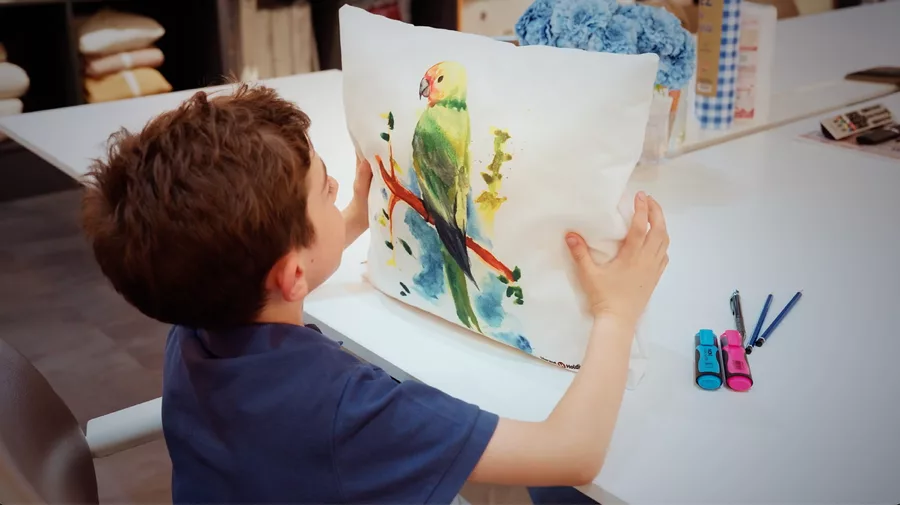 Bursa Bölge, 2026.04.23 11:16Bursa'daki bir holding bünyesinde hayata geçirilen proje kapsamında 100'ün üzerinde çocuğun yaptığı resimler, anne ve babalarının çalıştığı tekstil fabrikasında üretim sürecinden geçerek yastık kılıflarına basıldı.