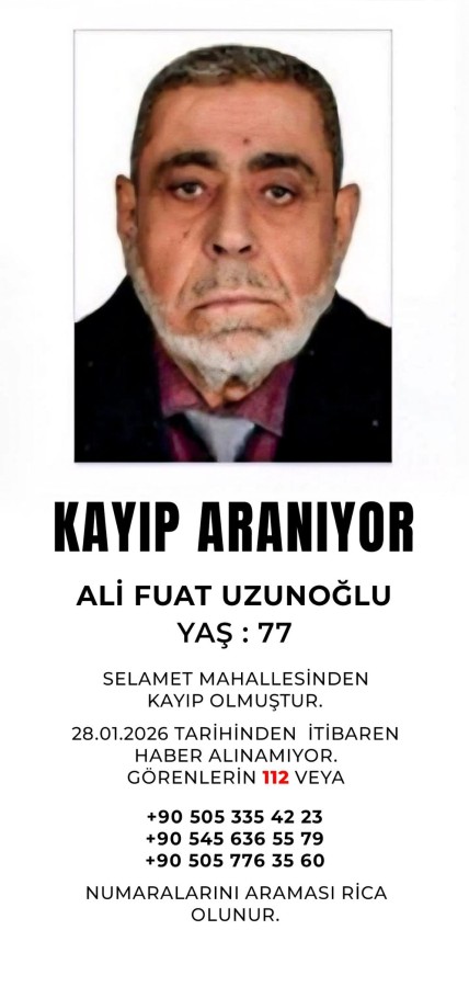 Uzunoğlu'nun bulunması için arama çalışmaları sürerken, ailesi ve yetkililer vatandaşlara çağrıda bulundu. Ali Fuat Uzunoğlu'nu gören ya da yerini bilenlerin 112 Acil Çağrı Merkezi'ne ya da +90 505 335 42 23, +90 545 636 55 79, +90 505 776 35 60 numaralı telefonlara bilgi vermeleri rica ediliyor.