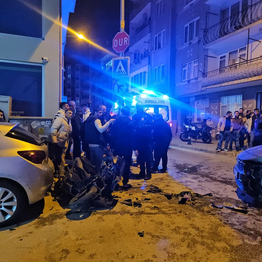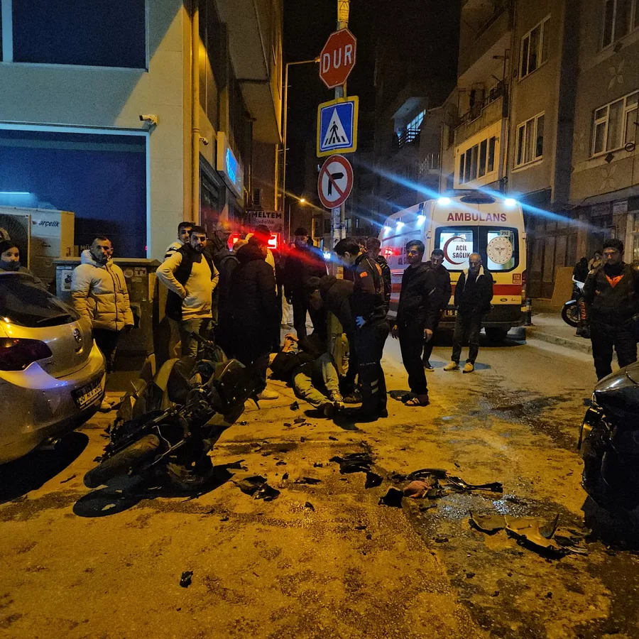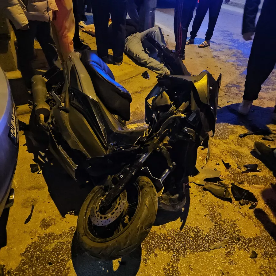 Çarpışmanın şiddetiyle motosiklet üzerindeki iki kişi yere savruldu. İhbar üzerine olay yerine sağlık ve polis ekipleri sevk edildi.
