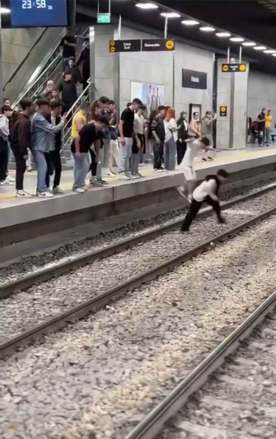 Bursa Bölge, 2024.05.20 13:16Bursa'da dün akşam metro istasyonlarında taşkınlıkların ardı arkası kesilmedi. Gençler hem kavgalarını sürdürdü hem de uygunsuz ve tehlikeli davranışlarda bulundu.