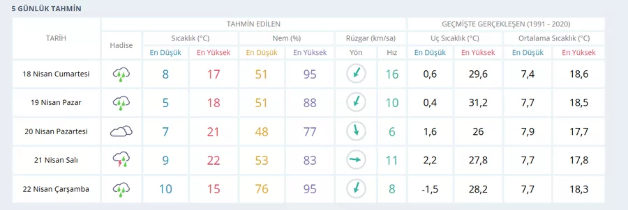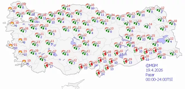 Hafta sonunun ikinci günü olan 19 Nisan Pazar günü ise havanın parçalı bulutlu geçeceği, yağışın etkisini azaltacağı tahmin ediliyor. Gün içinde sıcaklık 18 dereceye kadar çıkarken, gece saatlerinde 5 dereceye kadar düşmesi bekleniyor.