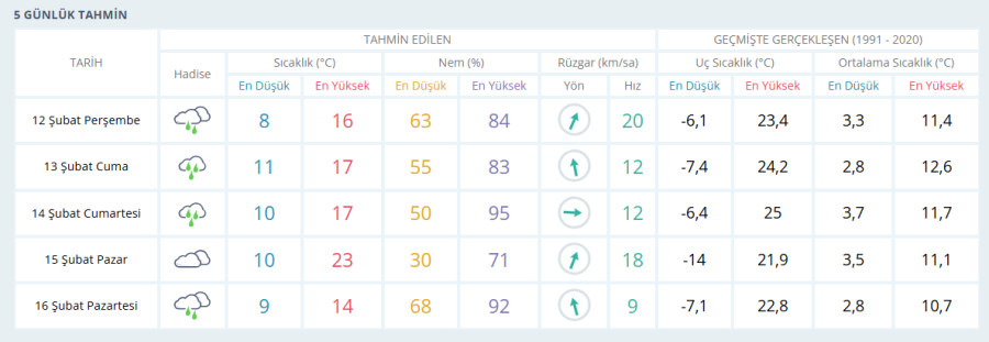 Bursa Bölge, 2026.02.12 00:44Meteoroloji Genel Müdürlüğü Bursa için 5 günlük hava tahmin raporunu açıkladı. Bursa'da devam eden yağışlara ek olarak sıcaklıklarda da önemli bir değişimin yaşanması bekleniyor. Gelen son 5 günlük raporda bu değişime dair detaylara yer verildi.