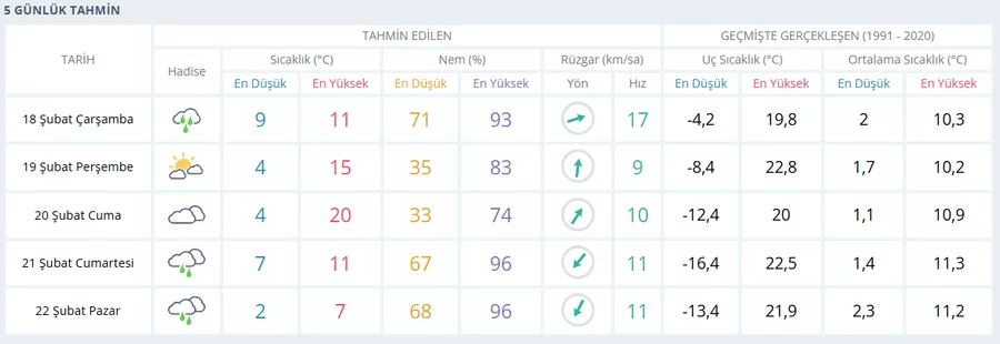 Bursa Bölge, 2026.02.18 00:54Meteoroloji Genel Müdürlüğü Bursa için 5 günlük hava tahmin raporunu açıkladı. Bir süredir Bursa'da mevsim normalleri üzerinde seyreden sıcaklıkların yeniden düşüşe geçeceği ifade edildi. Özellikle öğle saatlerinden itibaren yağışın etkisini artırması beklendiği vurgulandı.