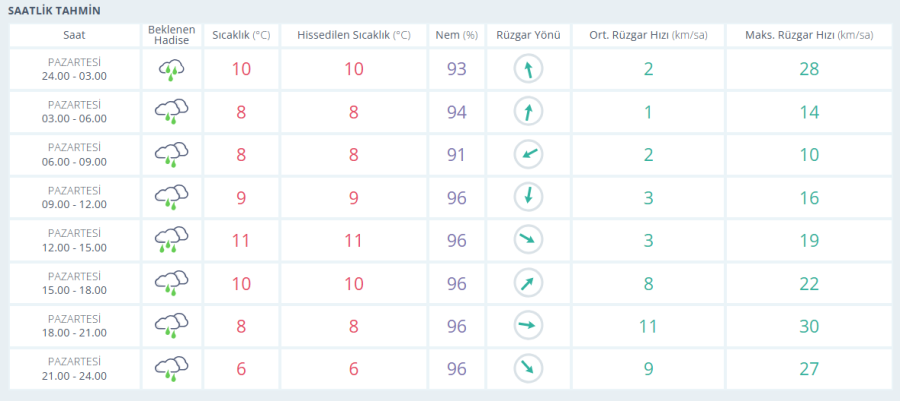 Bursa'da bugün Nilüfer ve Osmangazi'de sıcaklıkların 10-11 derecede seyretmesi bekleniyor. Bugün Bursa'da yağışlı havaların tüm gün boyunca etkili olacağı tahmin ediliyor.