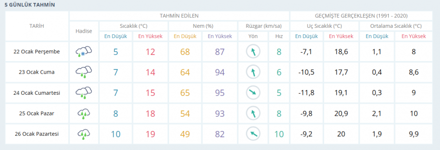 22 Ocak Perşembe: Perşembe günü Bursa'da yağmur başlıyor. Hava sıcaklığı ise 12 dereceye kadar çıkıyor.