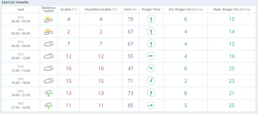 24 Şubat Salı: Salı günü Bursa'da kapalı ve bulutlu bir hava var. Öğleden sonra ise yağışın etkili olması bekleniyor. Sıcaklık 16 derece.