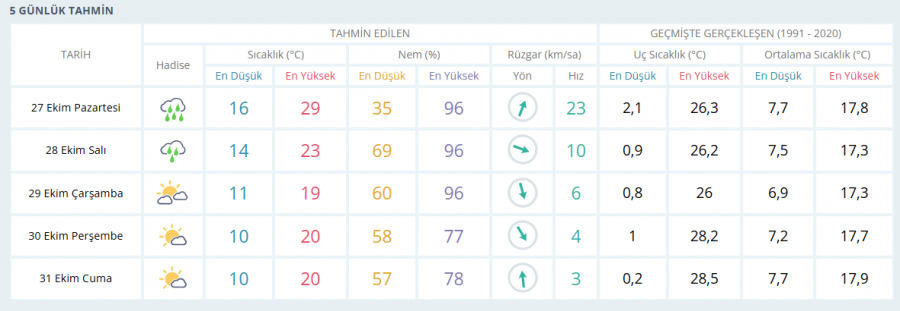 27 Ekim Pazartesi: Pazartesi günü de Bursa'ya yağmur geri dönüyor. Sıcaklıkların 28 dereceye kadar çıkacağı düşünülüyor.