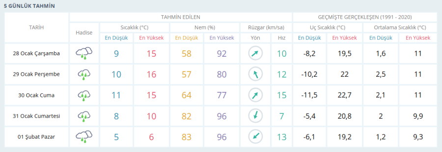 28 Ocak Çarşamba: Çarşamba günü Bursa'da sabahın ilk saatlerinden itibaren yağmurun etkili olacağı tahmin ediliyor.