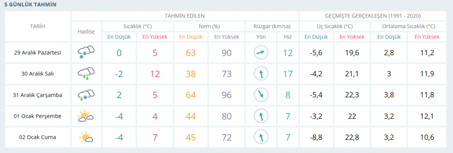 29 Aralık Pazartesi: Pazartesi günü Bursa'da sabah saatlerinde kar yağışı etkili olacak. Gündüz sıcaklığı 5 derece, gece sıcaklığı ise 0 dereceye kadar düşüyor.